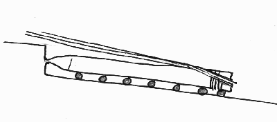 - Contrairement à ce que l'on croit bien souvent, les égyptiens ne faisaient pas éclater les blocs de roche par diltatation de coins de bois humides, ni dans les carrières de calcaire ou de grès, ni pour l'extraction des roches cristallines. Les rangées d'encoches bien visible le long des surfaces de séparation des blocs dans toute la région granitique d'Assouan ( dessin ci-dessus ) ne peuvent être antérieures à l'époque ptolémaïque. Elles sont dues aux ouvertures que l'on pratiquait dans la roche pour y introduire des burins de fer, technique d'ailleurs utilisée au-delà de l'époque romaine et jusqu'à nos jours, sous des formes plus ou moins différentes.