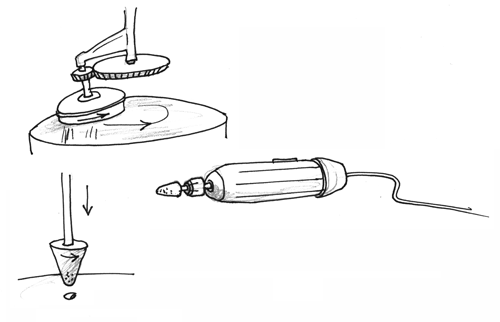 Nous avons vu que les Égyptiens étaient de remarquables techniciens et ingénieurs et par la suite nous découvrirons des choses plus étonnantes encore. S'agissant des meubles, de la marqueterie ils savaient utiliser des perceuses où des archets permettaient d'obtenir des vitesses de rotation rapides. Pourquoi ne pas transposer ces techniques en les appliquant au travail de la pierre, en faisant recours à des matières pouvant jouer le rôle de meules, voire à des abrasifs composites, mélanges de résine et de poudre de quartz.