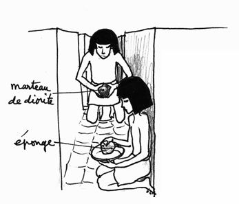 Surfaçage des blocs, retouches ( dessin de Champollion )