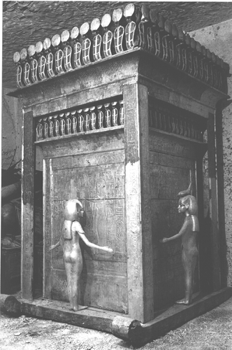 Tout ceci ( le mode de transport et la mise en place des blocs de toutes tailles ) sera abordé par la suite. Mais au passage, signalons que des descriptions de de chariots de traînage abondent. On en trouve représentés dans des sculptures. J'ai vu des statues de dieux, en pierre, représentées posées sur leur chariot (lequel est alors en pierre ). On trouve aussi des chariots qui ont peut être été utilisés pour amener des objets, dans des tombes, à commencer par celle de Toutankhamon :