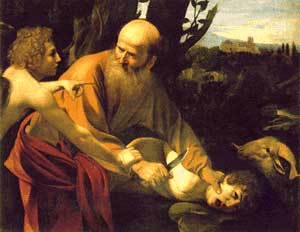 CARAVAGE. "Le Sacrifice d' Isaac", Musée des Offices, Florence.