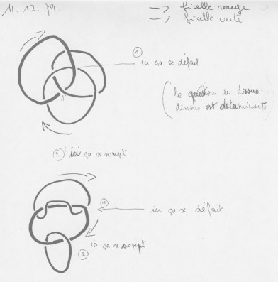 Je vais essayer de vous dire ce que c'est que le noeud Boroméen. Le noeud Boroméen se défait tout seul. Il y a un minimum de trois, il faut en effet pour qu'il puisse se défaire qu'il y en ait trois.