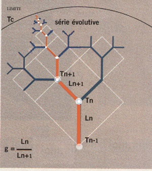 date de mutation, dans lequel n correspond à la position de l'évènement. Il s'agit donc d'une fractale qui induit que chaque mutation se produit de plus en plus rapidement jusqu'à une limite Tc et se présente de la manière suivante pour chaque série évolutive.