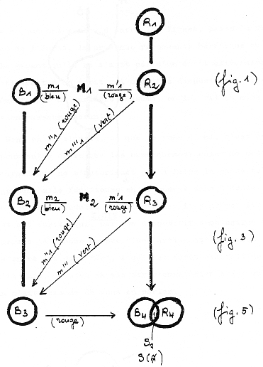 Voilà. Je pense que là (Fig . 1 - 2 ) , vous reconnaîtrez la figure, si toutefois je l'ai bien dessinée, la figure ou j'ai d'un seul trait (Fig. 2) figuré l'engendrement du réel , et que ce réel se prolonge en somme par l'imaginaire, puisque c'est bien de ça qu'il s'agit sans qu'on sache très bien ou s'arrête le réel et l'imaginaire. Voilà c'est cette figure-là (Fig. 2) qui se transforme dans cette figure là (Fig. 1). Je ne vous le donne que parce que en somme c'est le premier dessin ou je ne m'embrouille pas, ce qui est, ce qui est remarquable parce que je m'embrouille toujours bien sûr.