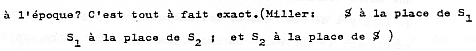 Oui, c'est incontestablement mieux comme ça. C'est incontestablement mieux comme ça, c'est encore plus troublant comme ça. Je veux dire que la faille entre S1 et S2 est plus frappante, parce que ici ( pointillé ) il y a quelque chose d'interrompu, et qu'en somme, le S1, ça n'est que le commencement du savoir, mais un savoir qui, qui se contente de toujours commencer, comme on dit, ça n'arrive à rien. C'est bien pourquoi je suis allé à Bruxelles. Je n'ai pas parlé de la psychanalyse dans les meilleurs termes. Il y en a qui, que je reconnais, enfin, qui sont là. (car ?) commencer à savoir pour n'y pas arriver, c'est quelque chose qui va, somme toute, assez bien avec ce que j'appelle mon manque d'espoir. Mais enfin, ça implique un nom, un terme qu'il me reste à vous laisser deviner, les personnes Belges qui m'ont entendu là-bas en parler à Bruxelles, étant libres de vous en faire part ou pas.