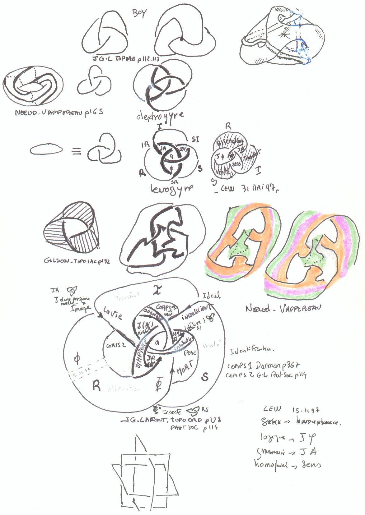 l'enlacement est homéotope à la surface torique) N.AC p 252 (Nodologie Alain Cochet L'Harmattan) -Le tore illustre la névrose car le névrosé se fait du tort du fait de ce Surmoi auquel il se soumet |