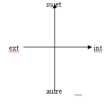 实际上,这里涉及到两个纬度。据此我们可以建立一个坐标系:x轴代表内外,y轴代表主体-彼者。虽然很多人经常将这两个纬度混用。如图: