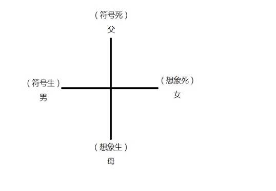 正是这样,性欲之谜才和母亲的亲爱不一样,霍大同先生没有错。将拉康的两性公式代入到他的十字架上[1],我们就会看清父母男女的真面目: