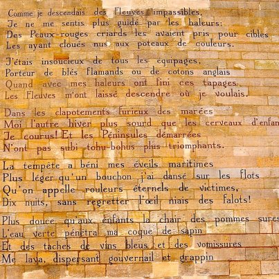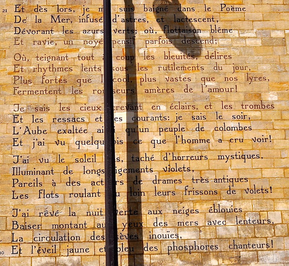 Ce poème commence à droite : Rimbaud (dix-sept ans) a déclamé « Le Bateau Ivre » la 1re fois à ses amis depuis le 1er étage d’un ancien café de l’autre côté de la Place St. Sulpice (1871) - Dans notre imagination, le vent soufflait de la Place St. Sulpice, vers la droite, dans la rue Férou.