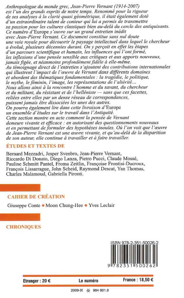 2. L’Univers, les dieux, les hommes. Vernant raconte les mythes, Le Seuil, Paris, 1999 (citation, p. 14).