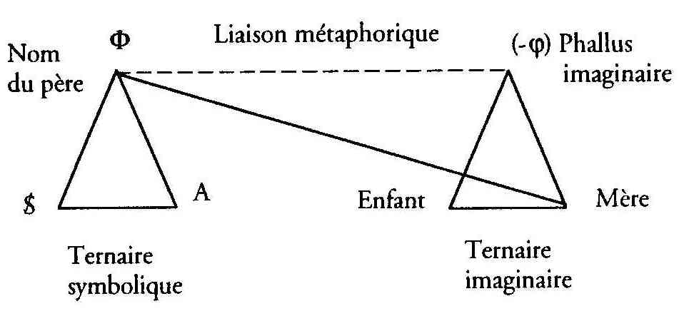 Dans ce procès, le signifiant dit Nom-du-Père se substitue au désir de la mère d(M), sans pour autant que le phallus signifiant du désir se substitue au phallus imaginaire qui serait son signifié.