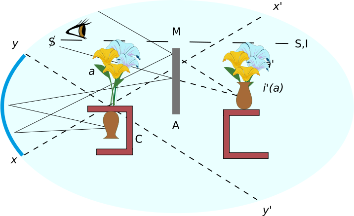 On sait qu’un miroir sphérique peut produire, d’un objet placé au point de son centre de courbure, une image qui lui est symétrique, mais dont l’important est qu’elle est une image