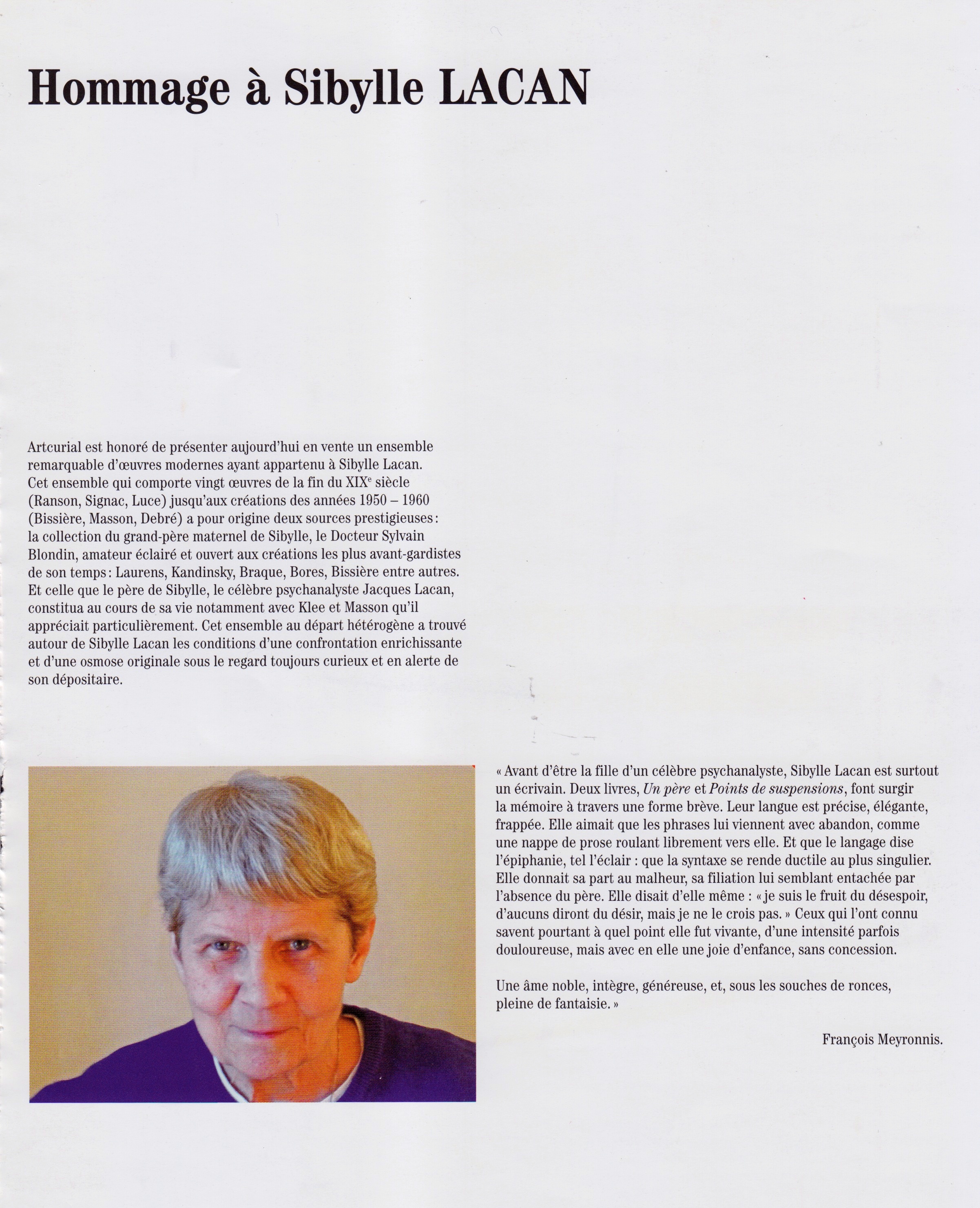 Hommage à Sibylle Lacan.