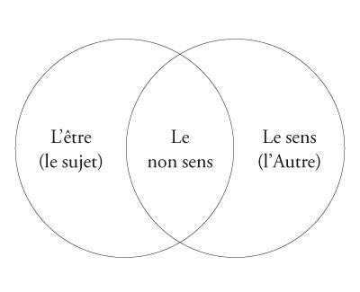 Si le choix porte sur l’être, la perte comprendra à la fois l’Autre, la voie du signifiant, et l’entrecroisement des deux cercles. Or, du fait de la rognure qu’elle appose sur la partie de l’être, le sujet échappera aussitôt, tombant dans ce qu’il faut bien appeler un non-sens. Si le choix porte sur l’Autre, la partie de l’être disparaîtra, mais il subsistera le sens écorné de la partie du non-sens qui, selon Lacan, « constitue, dans la réalisation du sujet, l’inconscient » (1973, p. 192).