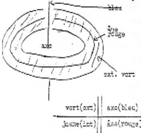 (p2->) Ca, c’est un tableau de Soury (voir page suivante) ; il y distingue deux éléments, à savoir le fait qu’un tore peut se retourner. Il se retourne de deux façons, soit que le tore soit troué, troué de l’extérieur.
