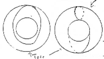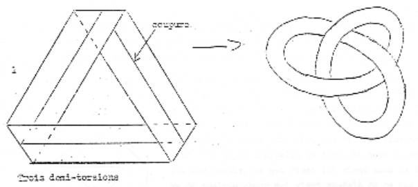manière dont les bords du trou, les bords de la bande se nouent entre eux, c’est à dire que là ils n’ont plus besoin de la matérialité de la bande pour maintenir leur nouage, c’est bien pour ça qu’on passe au tore, comme disait Lacan tout à l’heure.