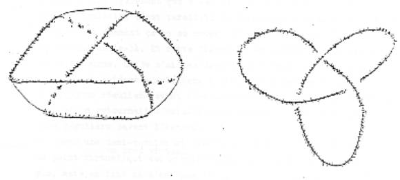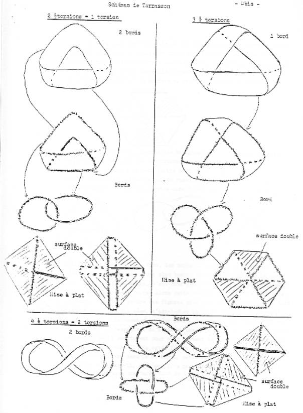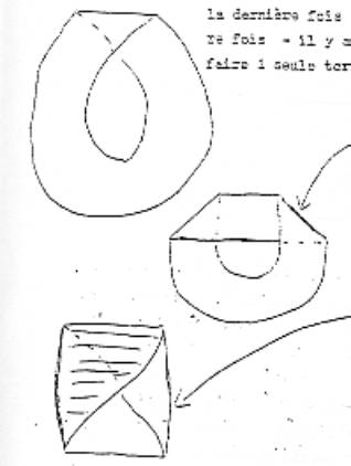 J.L : Je crois que ça donne une formation qui a des caractéristiques comme ça. Lorsqu'on divise deux fois une bande de Moébius, on obtient une bande qui ressemble à ça, qui est de ce type-là, avec une bande comme ça qui est nouée par une sorte de tissage et qui n'est pas simple