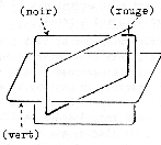 Mais ce qui est exigible à partir du nombre trois, c'est que pour le figurer de cette façon imagée, on doit énoncer, préciser que ces trois droites complétées de leur point à l'infini, il ne s'en trouvera pas une, vous sentez bien que si je les ai mises ici toutes les trois en rouge, c'est qu'il y a des raisons pour lesquelles j'ai |