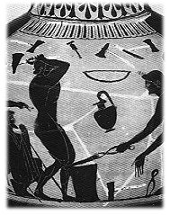 de l'Olympe. Forgeron boiteux rejeté par sa mère (Héra fut honteuse d'avoir un fils si laid, elle le lança au loin. Il fut recueilli par Thétis et l'Océanide Eurynomé. Pendant 9 ans il fut élevé dans une grotte ou il apprit son art ). Malheureux époux d'Aphrodite (qui le trompait avec Arès). Il règne sur un monde d'orfèvres et de sorciers, possesseur de ce pouvoir de lier ou de délier qui met les autres à sa merci et les rend impuissants, symbole phallique de rites d'initiation oubliés. Il bâtit des demeures et des palais splendides, permettant aux Dieux de vivre dans le luxe. Il forgea pour Thétis l'armure d'Achille et pour Aphrodite celle d'Énée. Son atelier est localisé soit à Lemnos, soit sous l'Etna en Sicile, soit sur l'Olympe. Il forge les chaînes de Prométhée, fabriqua la foudre de Zeus, les flèches d'Artémis et d'Apollon. Il fendit le crâne de Zeus avec une hache pour permettre à Athéna de s'échapper. Il donna naissance à Érichthonios et il sauva Achille de la noyade lors de la guerre de Troie. Il donna naissance à des enfants boiteux comme lui. Un grand nombre de statues des dieux, taillées à coups de hache, passaient pour l'œuvre d'Héphaïstos. |