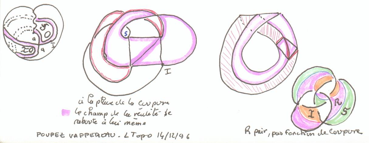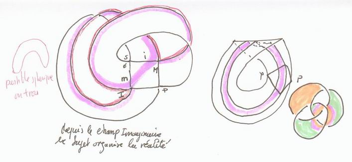 l'enlacement est homéotope à la surface torique) N.AC p 252 (Nodologie Alain Cochet L'Harmattan) -Le tore illustre la névrose car le névrosé se fait du tort du fait de ce Surmoi auquel il se soumet |