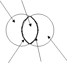 El sector de la izquierda sería el del Uno que no participa del ser. En realidad, si somos estrictos, para la formula "el Uno es uno" , no habría intersección con ningún otro campo. El único campo seria el del uno en su autopredicación.