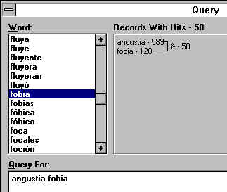 Hit (Acierto o Acierto): El resultado de una consulta siempre le dirá cuántos registros contienen aciertos. Un acierto es la palabra o frase que Ud. está buscando. Los aciertos quedan resaltados en el texto al concluir la búsqueda.Pattern (Patrón de Búsqueda): Es la expresión de lo que Ud. está buscando. Básicamente es un conjunto de letras que puede o no formar una palabra completa y contener o no comodines. Por ejemplo el patrón < Hist*> le permitirá encontrar todas las palabras que comienzan con hist (histeria, historia, histología, etc.)