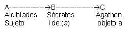 Lacan, dio un salto 2500 años para atrás y se fue a Platón, quien en su libro sobre "el Banquete" relata una historia de amor.El amor de Alcibíades , el discípulo, el amante, el erastés hacia Sócrates, el maestro, el amado,el erómenos.