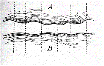 En el Curso de lingüística general, Saussure describió el pensamiento y los sonidos como dos planos indefinidos y separados, que representó mediante el siguiente esquema: