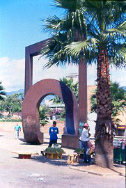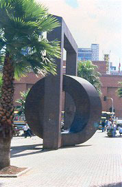 El acercamiento a esta "puerta", a su comprensión, se inicia pues por el movimiento del observador en correspondencia con el giro incluido en la estructura; ésta trata con su forma de conducir nuestros ojos y nuestros pasos, y de inscribirse en el cotidiano transitar y discurrir. Luego de ello podemos darnos cuenta de que el concepto, la Idea, de puerta está realmente allí: el marco, con su dintel y sus jambas; la bisagra o el gozne; y la hoja; ¿pero cuál hoja gira aquí? El aire. En esta obra se integran el hierro y el aire; es decir lo fuerte y resistente, con lo frágil y sutil que vemos luego en la obra del autor.