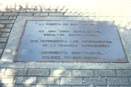 "La puerta de san Antonio" se encuentra en un espacio abierto; entonces: ¿Cuál espacio delimita? El contexto nos puede sugerir la respuesta: en una esquina del Parque de San Antonio; es obvio que está referida a ese espacio; pero tal vez no es tan simple. El parque es la plaza donde los ciudadanos, con sus diferentes concepciones y condiciones, se reúnen e interactúan realizando de ese modo la ciudad, la polis; allí con-viven los unos con los otros políticamente unidos en la diferencia. Entonces no es un acceso al simple espacio físico, sino una invitación a cada uno, no importa su interpretación de la obra y su concepción del mundo, a que ingrese a la frágil solidez de la existencia compartida. Hierro y aire abren en nuestro habitar esa puerta que, para nosotros está cercana a aquel verso de George Tralk de "Tarde de invierno":
