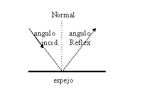 La óptica geométrica es una aproximación para ver lo que se produce en estos aparatos que son lentes y espejos, y tiene leyes. La primera ley para entender como funcionan los rayos que él dibuja en sus esquemas, es que en una superficie de reflexión el ángulo de incidencia, respecto a la normal (que es una línea perpendicular a esta superficie), es igual al ángulo de reflexión respecto a la misma (Figura 1).