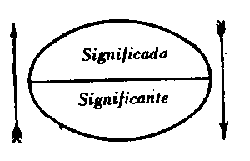 El círculo exterior y las flechas indican una función que relaciona dos variables, que son las expresadas a ambos lados de la barra, es decir, un función que relaciona los elementos de dos conjuntos: el conjunto de los significantes de un lado, y el conjunto de los significados del otro