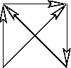 Ça n'a l'air de rien. Néanmoins, c'est si fortement inscrit dans la structure de notre monde qu'il n'y a pas d'autre fondement au fait de l'espace que nous vivons. Remarquez bien ceci que, mettre quatre points à égale distance, c'est le maximum de ce que vous pouvez faire dans notre espace. Vous ne mettrez jamais cinq points à égale distance l'un de l'autre. Cette menue forme, que je viens de rappeler là, est là pour faire sentir de quoi il s'agit : si les quadripodes sont, non pas tétraèdre mais tétrade, que le nombre des sommets soit égal à celui des surfaces est lié à ce même triangle arithmétique que j'ai tracé à mon dernier séminaire. Comme vous le voyez, pour s'asseoir, ça n'est pas de tout repos, ni l'un, ni l'autre. La position de gauche, vous y êtes habitués, de sorte que vous ne la sentez même plus, mais celle de droite n'est pas plus confortable : imaginez-vous assis sur un tétraèdre posé sur la pointe. C'est pourtant de là qu'il faut partir pour tout ce qu'il en est de ce qui constitue ce type d'assiette sociale qui repose sur ce qu'on appelle un discours. Et c'est cela que j'ai proprement avancé dans mon avant-avant-dernier séminaire. Le tétraèdre, pour l'appeler par son aspect présent, a de curieuses propriétés, c'est que s'il n'est pas comme celui-là, régulier -- l'égale distance n'est là que pour vous rappeler les propriétés du nombre quatre, eu égard à l'espace -- s'il est quelconque, il vous est proprement impossible d'y définir une symétrie. Néanmoins, il a ceci de particulier, c'est que, si ses côtés, à savoir ces petits traits que vous voyez qui joignent ce qu'on appelle, en géométrie, des sommets, si ces petits traits vous les vectorisez, c'est-à-dire, que vous y marquiez un sens, il suffit que vous posiez comme principe qu'aucun des sommets ne sera privilégié de ceci, qui serait forcément un privilège -- puisque, si ça se passait, il y en aurait au moins deux qui ne pourraient pas en bénéficier -- si donc vous posez que nulle part il ne peut y avoir convergence de trois vecteurs, ni nulle part divergence de trois vecteurs du même sommet, vous obtenez alors nécessairement la répartition :