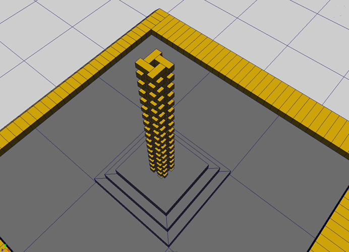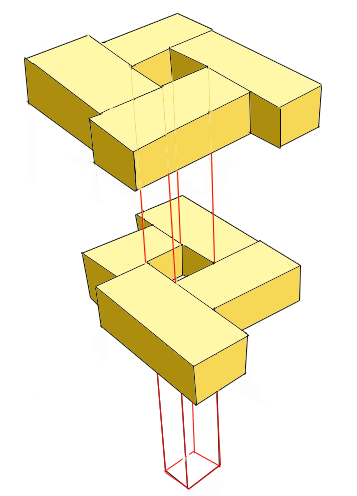 On distingue une suite d'entablements ayant une largeur de deux unité, sur lesquels les rampes en briques crue viendont prendre place.