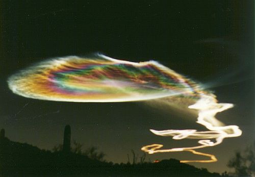 Il est bien difficile de situer l'altitude à laquelle se situe le phénomène mais, de deux choses l'une : ou ces formes tarabiscotées sont liées à l'effet d'une turbulence atmosphérique ou elles sont le résultat d'un épandage selon une trajectoire complexe ou d'un balayage de micro-ondes également complexe. Il est exclu d'imputer le phénomène à une cause naturelle pour deux raisons.