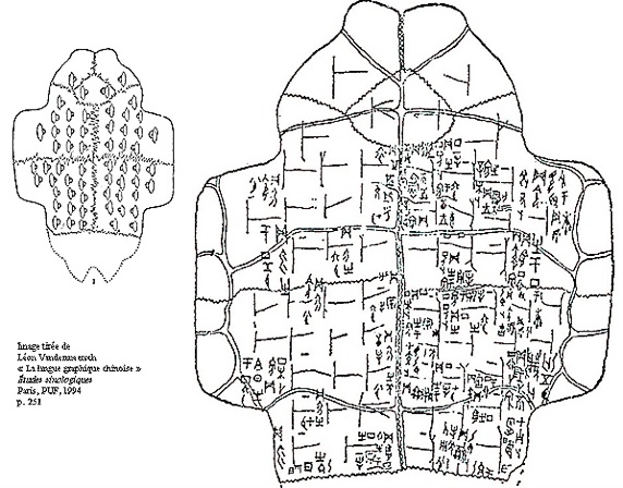 → Il est l’apanage du roi et des devins, qui ajouteront à la connaissance de la divination la connaissance et la pratique des signes écrits ; manipuler les signes écrits devient un acte redoutable, qui revient à toucher à la structure intrinsèque de l’univers ; il participe de la vision chinoise ancienne de ce qu’est un acte « politique » : celui d’une mise en adéquation du monde des hommes avec celui des dieux, ou, plus tard, du « Ciel ».