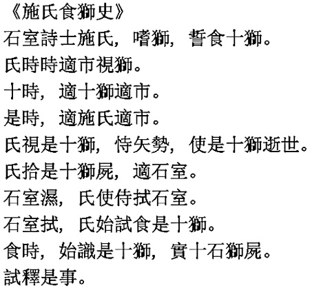 Shí shì shī shì Shī shì, shì shī, shì shí shí shī.