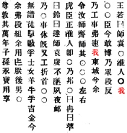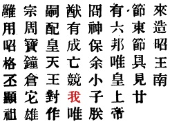La question de cette forme spéculaire du caractère ancien qui dit « je » dans la modernité demeurait. En effet il m’importait d’en retrouver la trace, car l’argument du Père L. Wieger me semble pertinent : « c’est pour des raisons de commodité d’écriture que la forme spéculaire disparaît au profit de la forme moderne : 我 »
