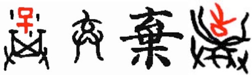 Elle va être la clé du caractère qi 棄 que l’on retrouve ici dans sa forme ancienne,