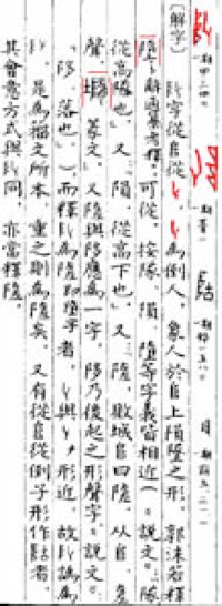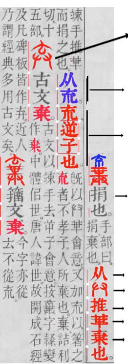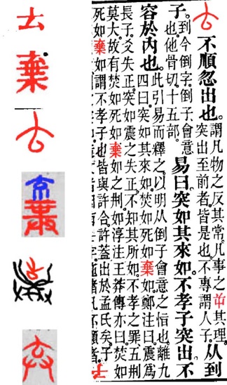 Voici la clé de l’enfant renversé dans le Shuo wen, en rouge :