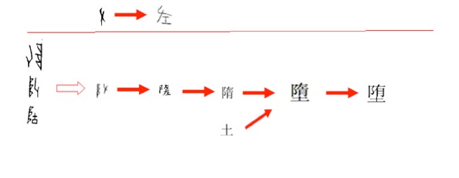 Dans le Shuo wen (à gauche) est expliqué ce renversement de la composante homme (en rouge). Et ci-dessous l’explication que Yan Helai nous donne :