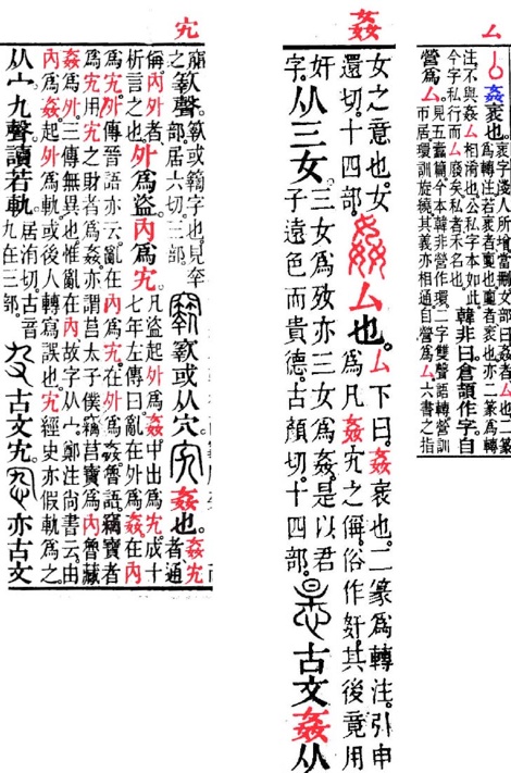 C’est ici le début d’un travail sur le caractère si que J. Lacan nous signale dans le séminaire XVIII en le traduisant par “personnel” et par “retors” ! Dans le Shuo Wen à propos des choses personnelles apparaissent celles qui sont “internes” 内 et celles qui sont “externes” 外. Voir à ce propos Mengzi (孟子). Mais aussi le mot “retors” aurait-il un rapport avec “le rebelle” ?