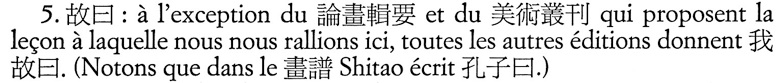 Poursuivant mes recherches je trouve dans : Les propos sur la peinture du moine Citrouille- Amère de Shi Tao, traduit et commenté par Pierre Ryckmans (référence essentielle pour J. Lacan), en lisant le texte chinois la précision suivante dans la note 5 :