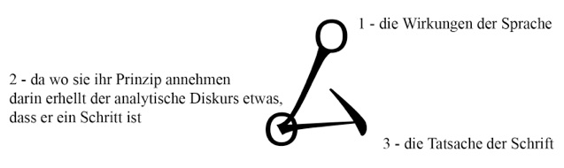 „Es ist sicher, dass es hier tatsächlich eine frappierende Kluft gibt. Wie kommt es, dass es eine Rechtschreibung gibt? Das ist das Verblüffendste der Welt, und es ist offensichtlich durch das Geschriebene, dass das Sprechen seine Bresche schlägt, durch das Geschriebene und einzig durch das Geschriebene, das Geschriebene dessen, was man die Ziffern nennt, weil man nicht von den Zahlen reden will. Es gibt da etwas, das jener Ordnung angehört, wonach man eben eine Frage stellte —der Ordnung der Immamenz. Der Körper im Signifikanten hinterlässt einen Zug, der ein einziger ist.