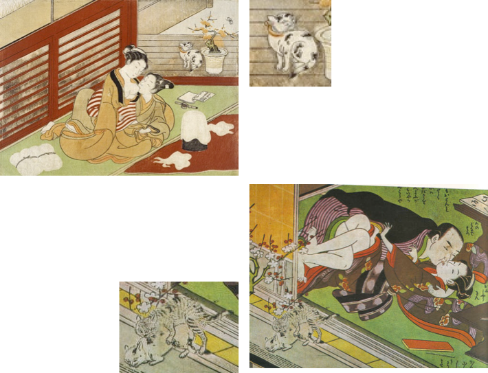 Daher muss ich Sie bei dieser Gelegenheit – denn es ist womöglich die letzte – darauf aufmerksam machen, dass in den japanischen Druckgrafiken, den ziemlich einzigartigen hergestellten, schriftlichen Kunstwerken, die dafür bekannt sind, dass in ihnen gewagt wird, uns etwas vorzustellen, von dem niemand annehmen sollte, dass ich seinen Wert schmälere: die kopulatorischen Gier [la fureur copulatoire]. Man muss sagen, dass dies nicht jedermann zugänglich ist. Man muss sich in einer gewissen zivilisatorischen Ordnung befinden, die sich nie in den Dienst jener Dialektik gestellt hat, die ich Ihnen eines Tages beiläufig näher zu bestimmen versuchen werde: es handelt sich um die christliche. Es ist sehr befremdlich, dass jedes Mal, wenn sie diese Personen sehen, die sich auf wahrhaftig ergreifende Weise umarmen, die [aber] nichts mit der wahrlich widerlichen Ästhetik gemein hat, wie sie sich in den gewöhnlichen Darstellungen dieses Niveaus in unserer Malerei abspielt, dass Sie seltsamerweise sehr häufig, fast immer, in ein kleinen Ecke der Grafik ein kleine dritte Person vorfinden; manchmal hat dies den Anschein, ein Kind zu sein, manchmal sogar nur der Künstler, ein wenig eine Lachnummer – denn in alledem werden Sie erkennen, dass diese dritte Person, ganz gleich wie man sie darstellt, und wir zweifeln nicht, worum es sich dabei handelt, eben dasjenige ist, das ertragen muss, dass ich es als Objekt bezeichne, und dies ganz genau in der Form, in der es tatsächlich substantiell da ist, in der es in die zwischenmenschliche Kopulation jenes nicht erklärbare Etwas einführt, das just mit dem zusammenhängt, das Sie zu seiner Vervollständigung niemals erwarten, und das sich ganz einfach ›der Blick‹ nennt. Gerde deshalb handelt es sich bei dieser kleinen Person manchmal um ein Kind und manchmal – wahrlich seltsam und rätselhaft für uns, die durch unsere Brille darauf schielen – einfach ein kleiner Mensch als ganz und gar Mensch, erschaffen und gezeichnet mit denselben Proportionen wie der sich da aktiv betätigende Mann; nur eben ganz und gar verkleinert; als eine Illustration, für das empfindsam ist, was sich als wirklich grundlegend [basal] erweist, und die uns dazu zwingt, das sogenannte Prinzip der Widerspruchsfreiheit, zumindest soweit dieses das damit behandelte Feld betrifft, als einem fundamentalen Ursprungspunkt des Denkens [point raidical à l’origine de la pensée] zu revidieren, und das sich, um eine gängige [›colloquial‹], umgangsprachliche Formulierung zu verwenden, so äußert: ›Nie zwei ohne ein Drittes‹ [jamais deux sans trois].1 Sie sagen dies ohne nachzudenken. Sie denken einfach, dies besagte, dass wenn Sie bereits zwei Scherereien [emm…] habe, sie zwangsläufig auch eine dritte erleben werden.2 Mitnichten! Keineswegs will es das besagen! Es bedeutet, dass es, um Zwei zu sein, eines Dritten bedarf.
