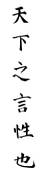 Sehen wir also, worum es sich handelt. Yen bedeutet nichts anderes als ›Sprache‹ [langage], doch wie alle Begriffe der chinesischen Sprache ist es auch möglich, diesen [Term] im Sinne eines Verbs zu verwenden. Folglich kann dies gleichermaßen die Sprache als auch den, der spricht, bezeichnen, und wer spricht was? Das wäre in diesem Fall das, was folgt, also hsing, die Natur, was unter dem Himmel von der Natur spricht, und yeh wäre eine Betonung.