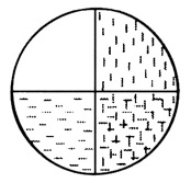 In dem kleinen Schema von Peirce, an das ich erinnere, haben wir hier oben rechts eine gewisse Anzahl vertikaler Striche. Hier links untern haben wir keinen derartigen, sie sind alle horizontal. Hier rechts unten haben wir eine kleine Mischung aus beiden. Schließlich haben wir hier oben links keinerlei Striche. Aus der Überblendung von zwei kombinierten Feldern [chevauchement de deux de ces cases] resultiert die spezifische Besonderheit der einen oder anderen dieser Propositionen. Wenn man die beiden oberen Quadranten zusammenfasst, kann man feststellen – jeder Strich ist vertikal. Wenn er nicht vertikal ist, gibt es keinen Strich. Für die Formulierung der Negation muss man die beiden Quadranten rechts vereinen. Entweder gibt es keinen Strich oder es gibt keinen vertikalen.