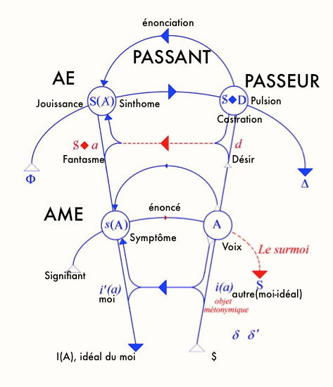 32 — Sur le fantasme ainsi posé, le graphe inscrit que le désir se règle, homologue à ce qu’il en est du moi au regard de l’image du corps, à ceci près qu’il marque encore l’inversion des méconnaissances où se fondent respectivement l’un et l’autre. Ainsi-se ferme la voie imaginaire par où je dois dans l’analyse advenir, là où c’était l’inconscient, (idem. P.8I6).