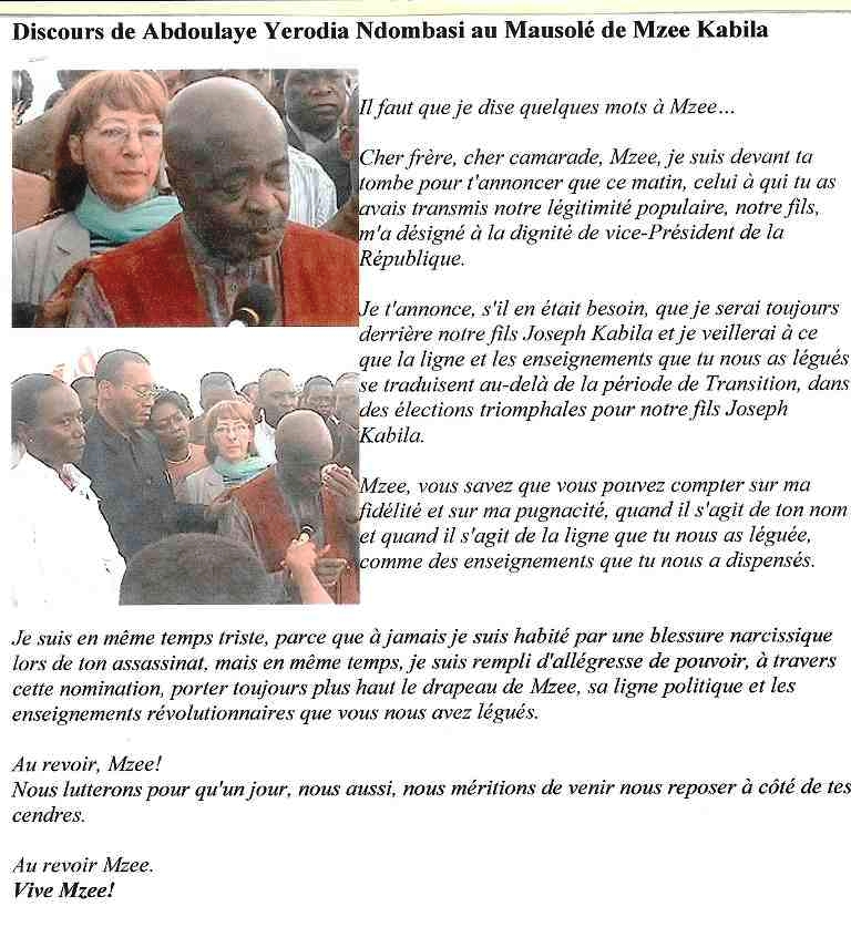 M. Yerodia, qui passe pour celui qui exprime le mieux « les pensées matinales » de M. Kabila, rapportera plus tard les propos du Président, qui résumait la situation en ces termes :